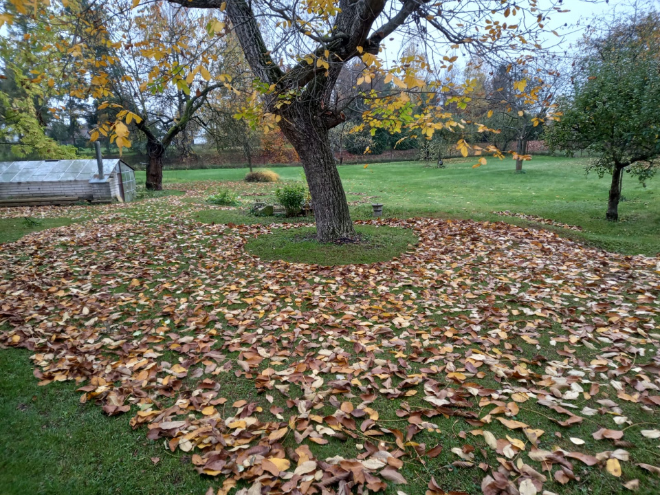 Na podzim Věra pomáhá Lence hrabat ořešákové listí