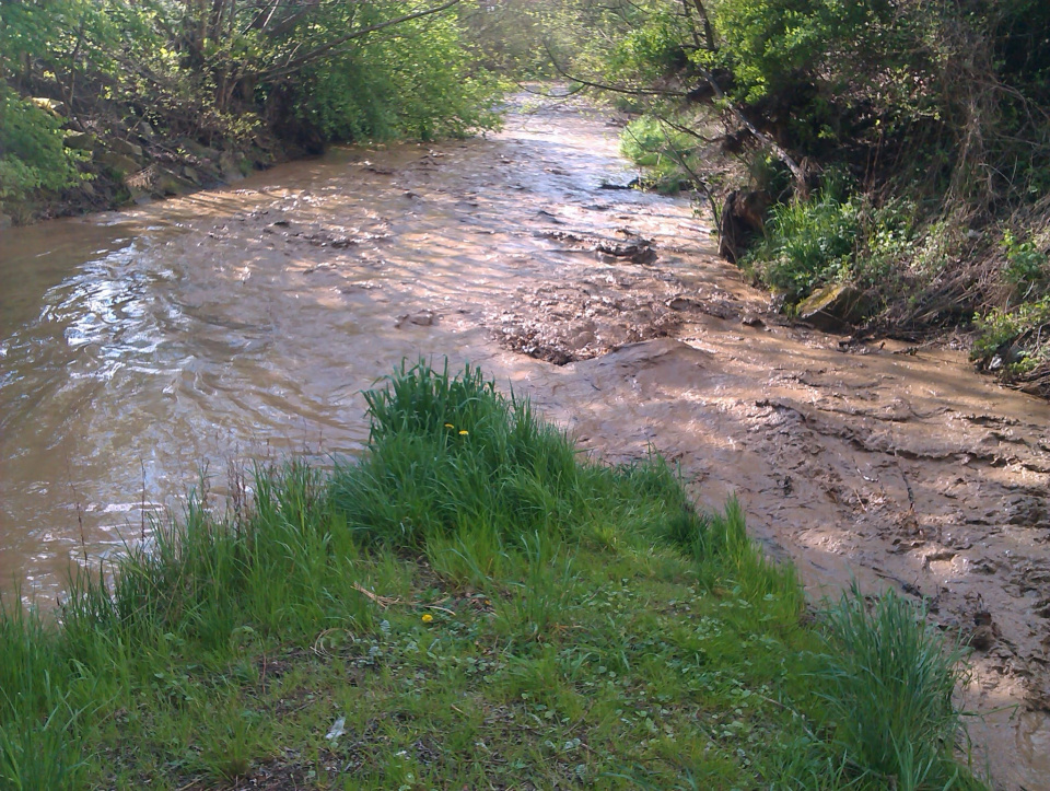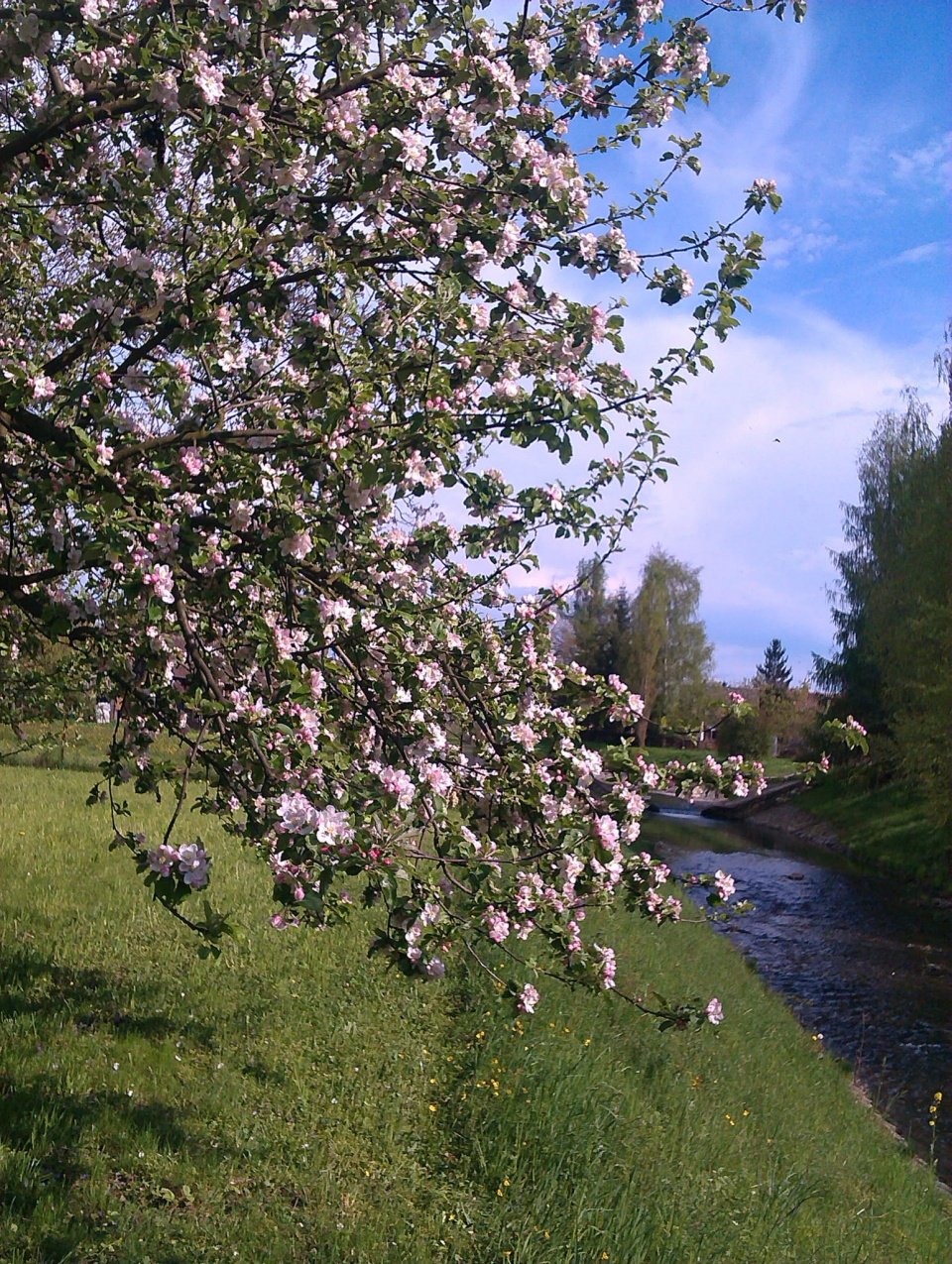 Lenka: "Naši zahradu obtékají dva potoky, které na jejím konci tvoří soutok, takže je vlastně takovým poloostrovem. Na něm vyrostlo mnoho generací dětí." Když má potok možnost, rád se rozdovádí