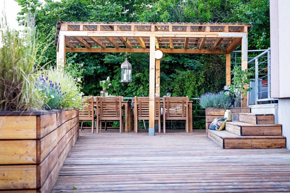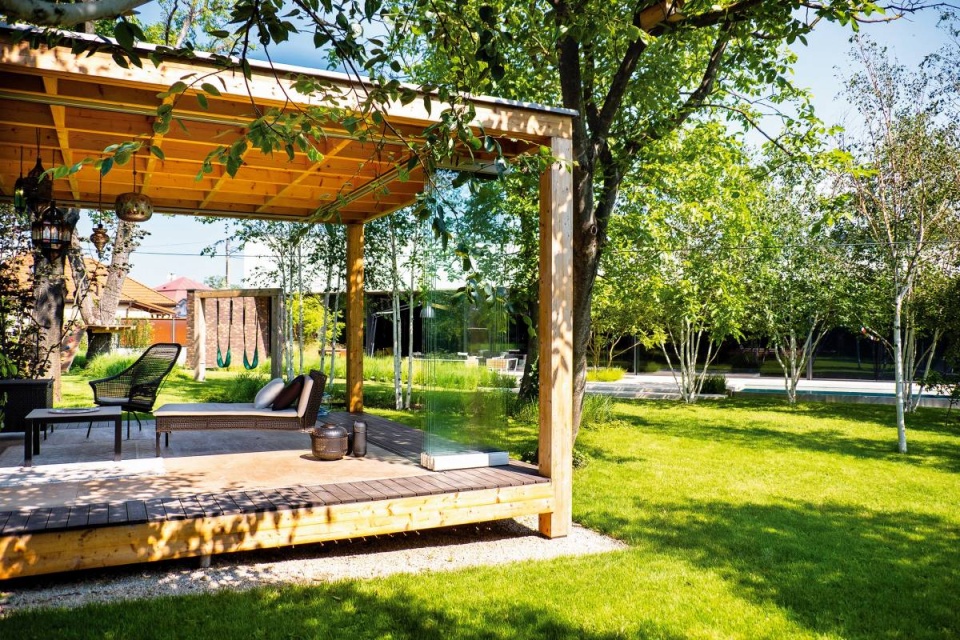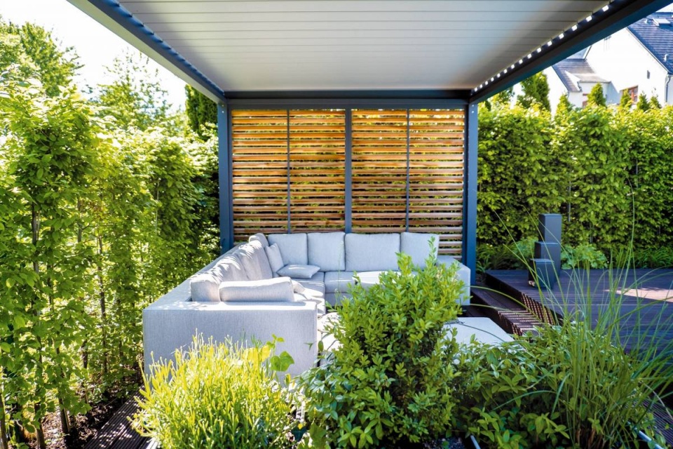 Pergoly mohou mít dálkově ovládané stínicí lamely. Nepřekonatelnou atmosféru ale stejně dobře vytvoří jemný stín rostlin.
