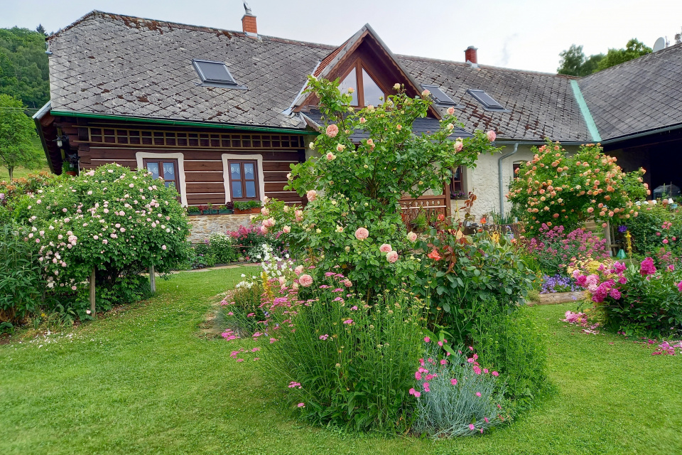 Dnes je zahrada plná krásných zákoutí. Tohle se nachází vedle malé skalky u domu.