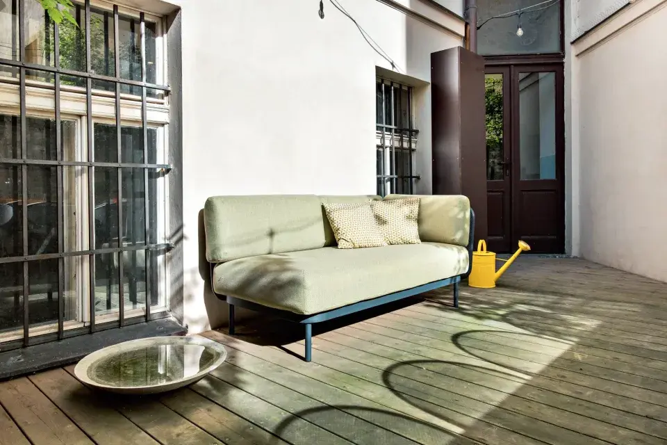 Outdoorový gauč můžete mít na terase dvorku po celou sezonu.