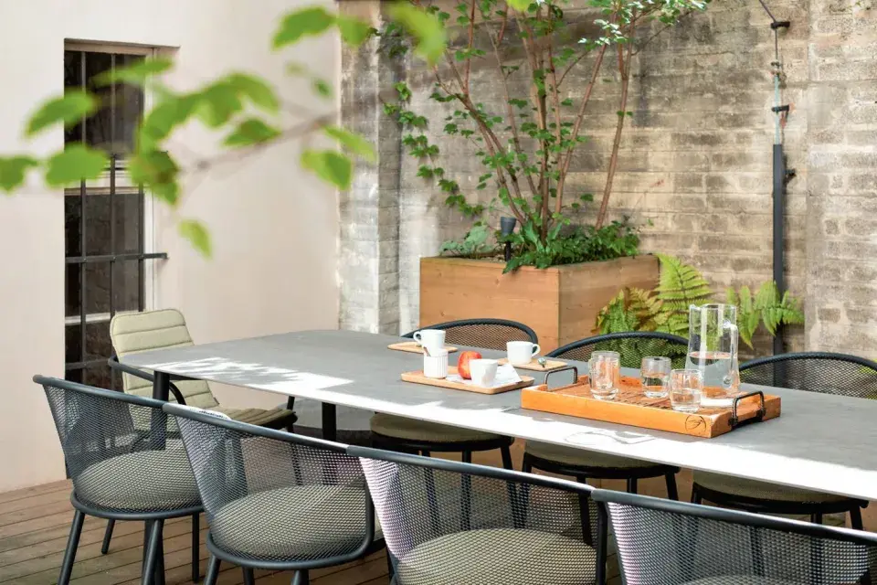Při výběru nábytku na dřevěnou terasu není umělý těžký plný ratan to pravé. Zkuste sezení s elegantní lehkou konstrukcí.