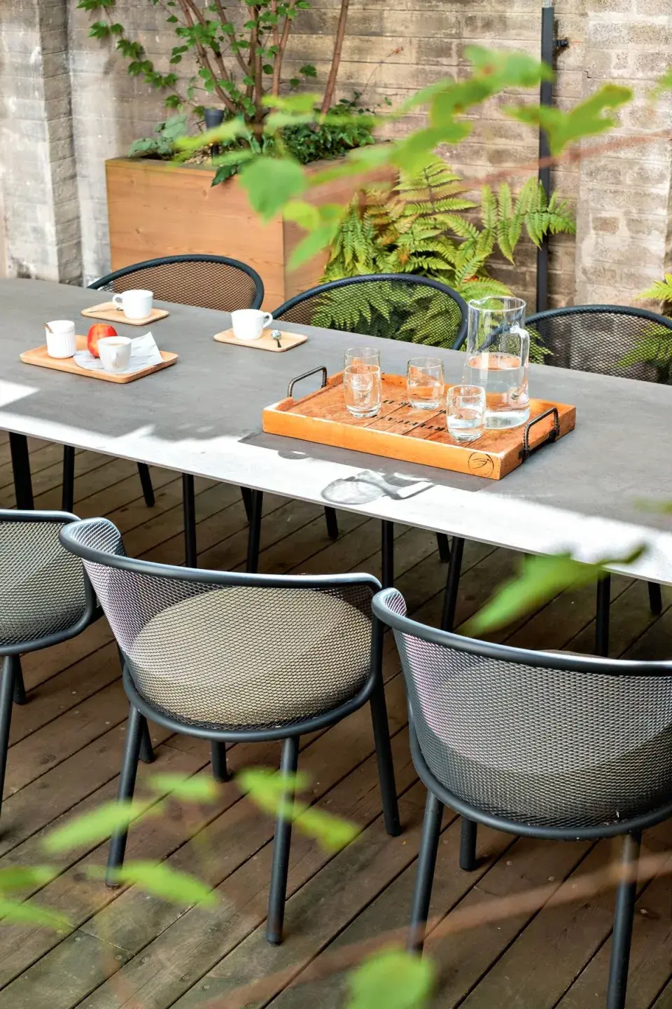 Na dřevěné terase lépe vypadá nábytek kombinovaný s ocelí nebo hliníkem.