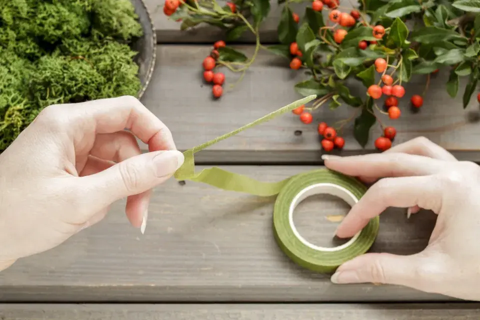 Připravte si pevný vyvazovací drátek. Ve floristice se využívá zejména k zpevňování květin, které mají sklony k rychlému uvadání, například gerbery. Drátek omotejte po celé délce floristickou zelenou páskou, gutaperčou