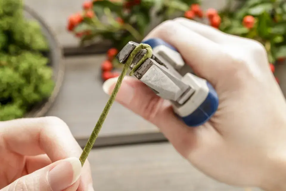 Na konec omotaného drátku připevněte v místě ohnutí tenký vázací drátek