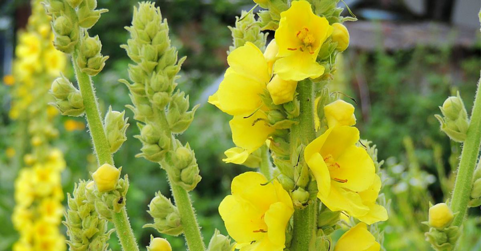 Velké zlatožluté květy divizny velkokvěté (Verbascum densiflorum) jsou uspořádané ve svazečcích v hustém hroznu a kvetou postupně od července do září. Plodem je tobolka.