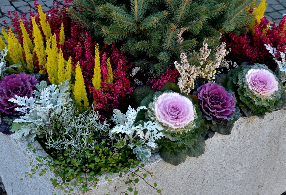 Podzimní truhlík s okrasným zelím