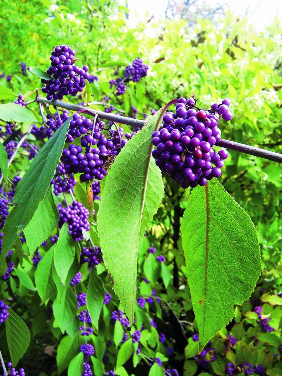 Plody krásnoplodky (Callicarpa) v různých odstínech fialové (u některých druhů i bílé) nejlépe dozrají v teplé lokalitě na chráněném místě s vlhčí zeminou.