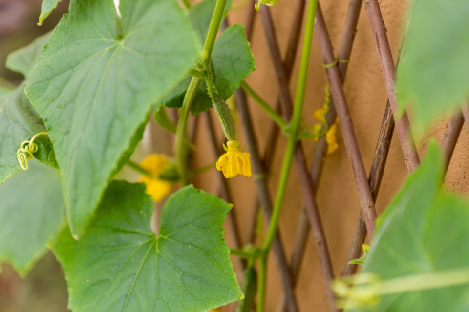 Bez čeho se okurky na balkoně ani ve skleníku neobejdou je opora. Vyvázat je můžete třeba k treláži.