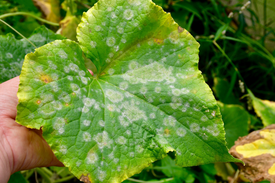 Listy okurek napadené padlím potřebují včasný postřik fungicidem, jinak o rostliny brzy přijdete. Dejte si tedy na tuto nejčastější chorobu pozor a to nejen u okurek