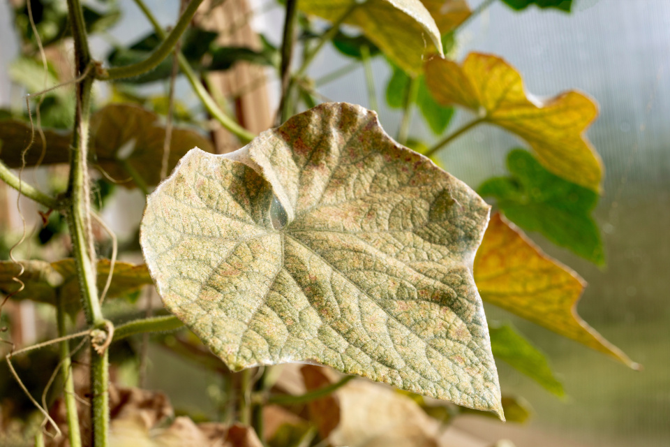 Další houbovou chorobou, která ohrožuje výši úrody okurek, je plíseň..Při pěstování okurek ve skleníku musíte pravidelně větrat