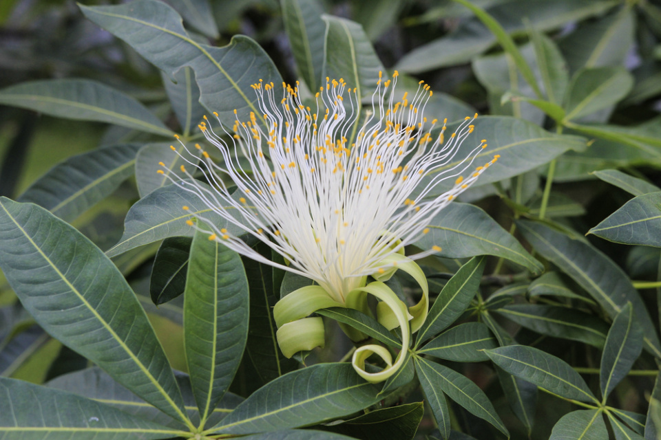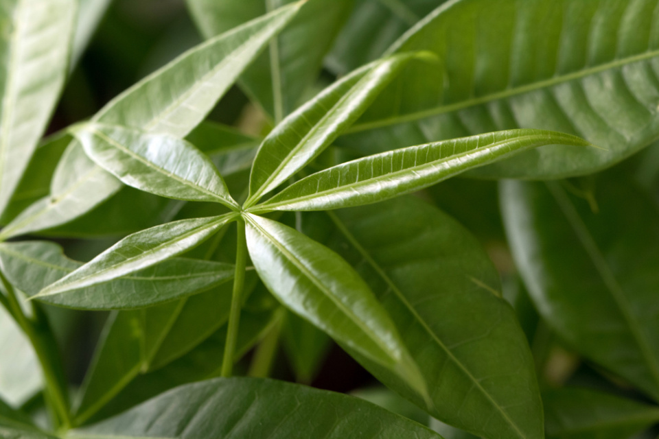 Pachira má nejčastěji pětičetné složené listy, někdy je však lístků i sedm. Taková rostlina prý nosí štěstí nejlépe