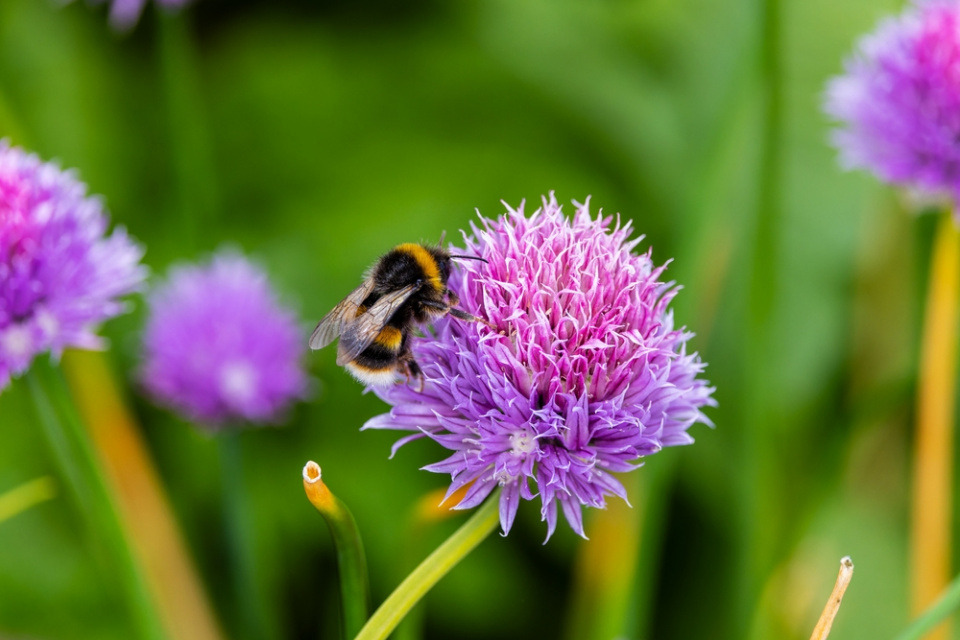 Fialové květy pažitky jsou nejen působivou okrasou zahrady, ale především cenným zdrojem nektaru a pylu pro včely, čmeláky a motýly