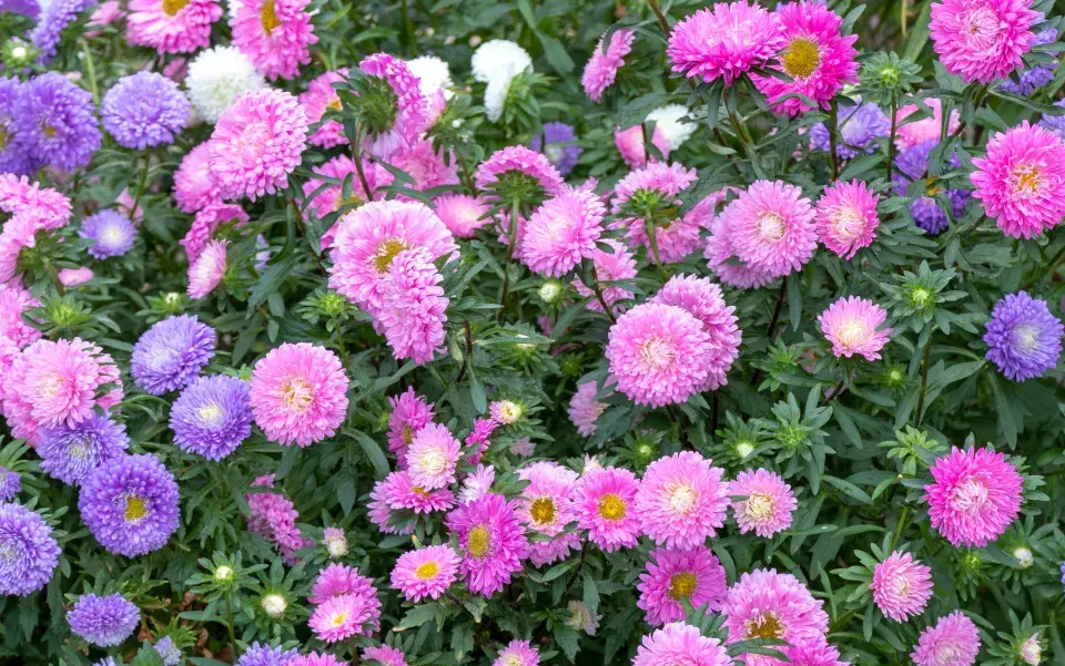 Astry čínské (Callistephus chinensis) jsou skutečnými královnami druhé poloviny léta a začátku podzimu, kdy vykvétají snad ve všech odstínech pastelových barev, kromě modré. Semena můžete vysévat od března do dubna doma za oknem nebo i do pařeniště, případně v květnu přímo na záhon. Semena nejlépe klíčí při teplotě 15-18 °C