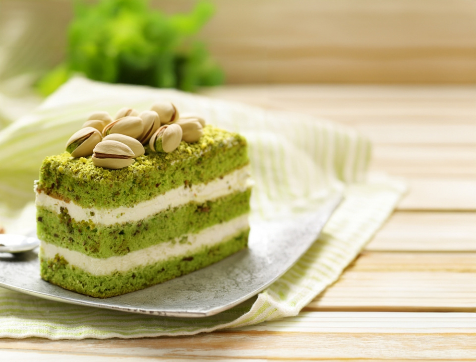 Zákusek s pistáciovou příchutí bývá nejčastěji i uměle dobarven do výrazně zelené barvy
