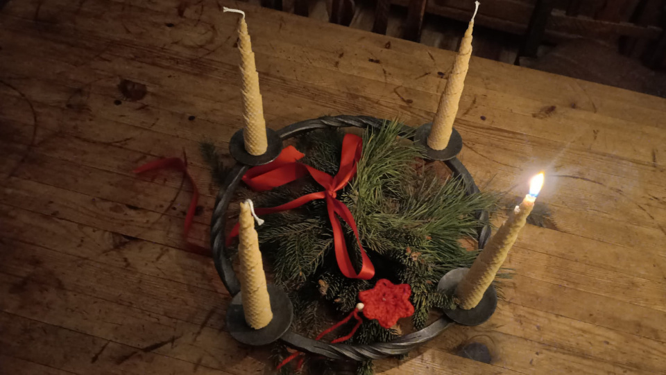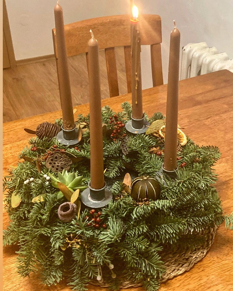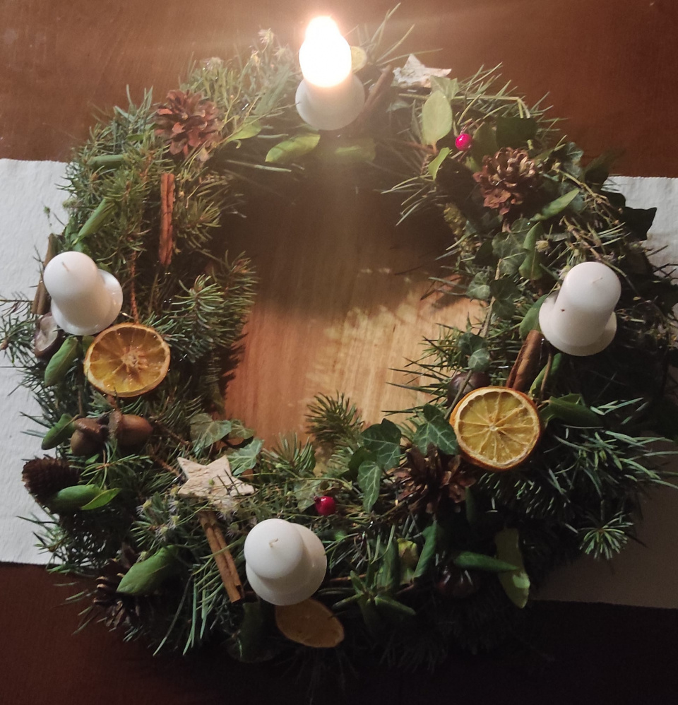 Přírodní věnec s přírodními svíčkami někdy vlastní výroby, někdy kupované, zdobí každoročně domácnost naší čtenářky Aleny.