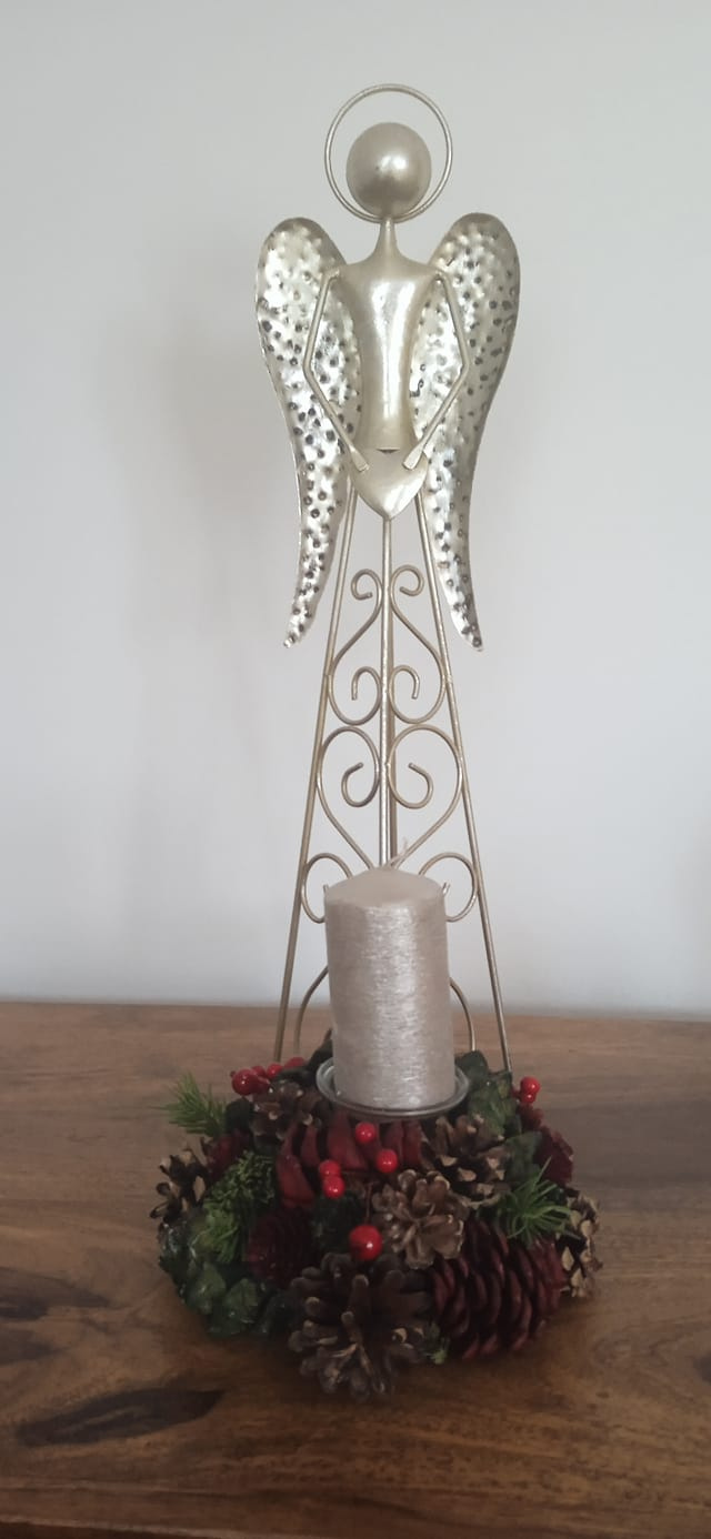 Anděl jako hlavní prvek vánočního svícnu vypadá krásně.