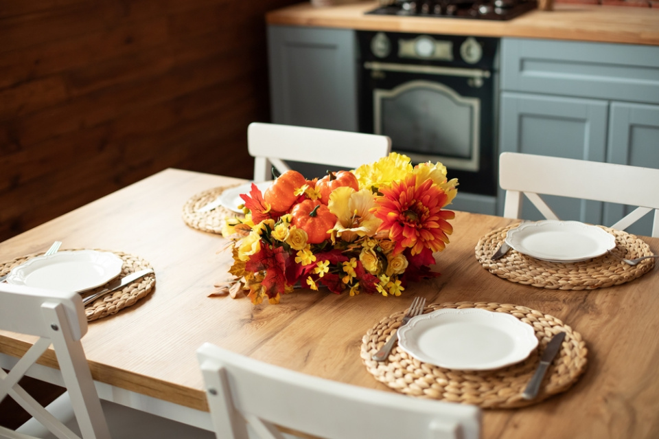 - Podzimní dekorace se hodí pro běžné stolování i slavnostní tabuli