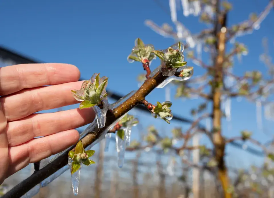 Večer před hlášenými mrazíky postříkejte koruny stromů vodou. Voda vytvoří ochrannou krustu, která by měla květy před zmrznutím ochránit
