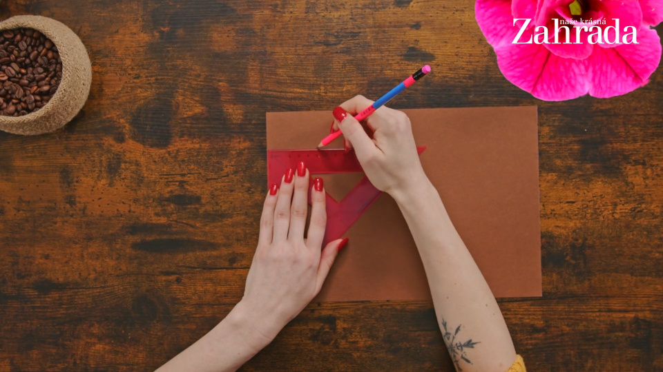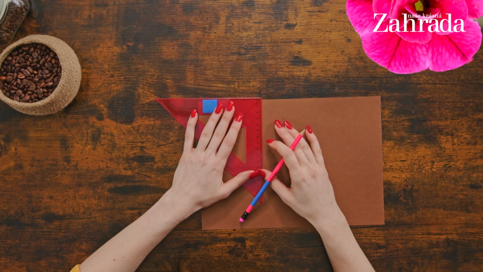 S pomocí trojúhelníku naměřte obdélník o rozměru asi 4x7 cm