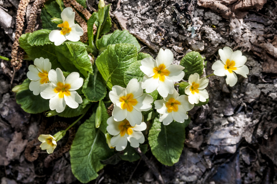 Primule bezlodyžná ve venkovním záhonu