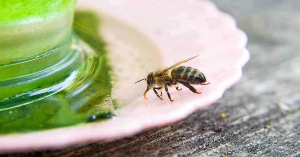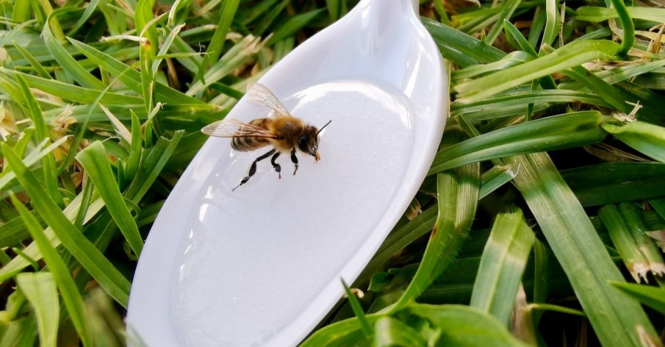 Žíznivá včela přiletí i na lžíci s vodou, zvlášť pokud do vody přidáte trochu cukru.