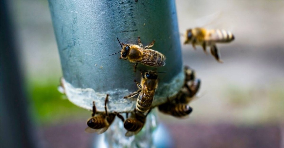 Nedostatek vody v okolí donutí včely olizovat i zahradní hadici...