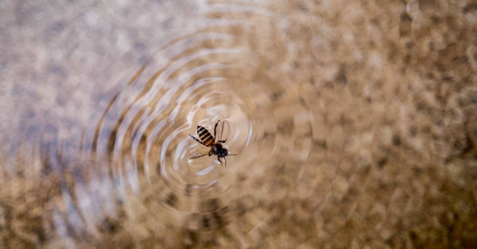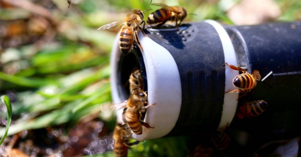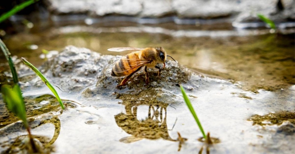 Bez záchytných bodů by se mohly včely (ale i jiný hmyz) ve vodě utopit.