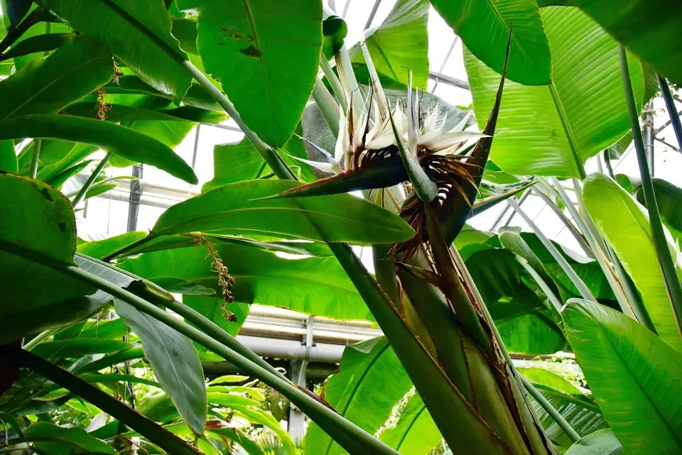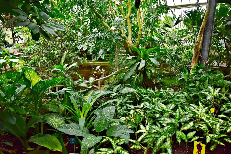 Ve velkém skleníku kolem jezírka najdete rostliny tropických pralesů.