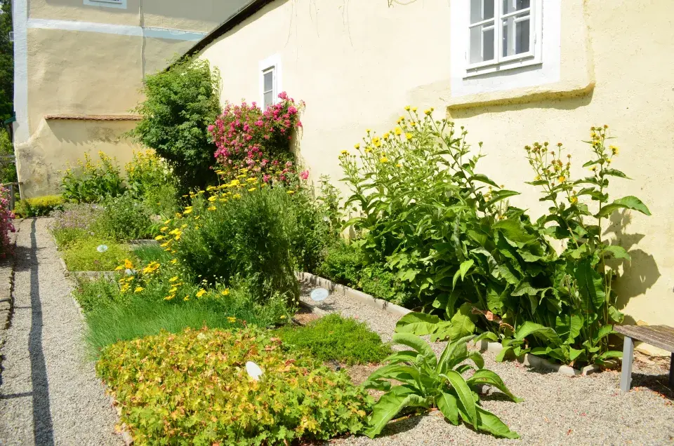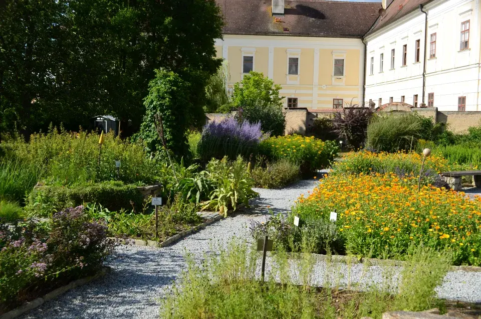 Na jižní straně kláštera Zwettl je terasovité herbárium s desítkami záhonů nejrůznějších druhů léčivých bylin i bylinek používaných v kuchyni