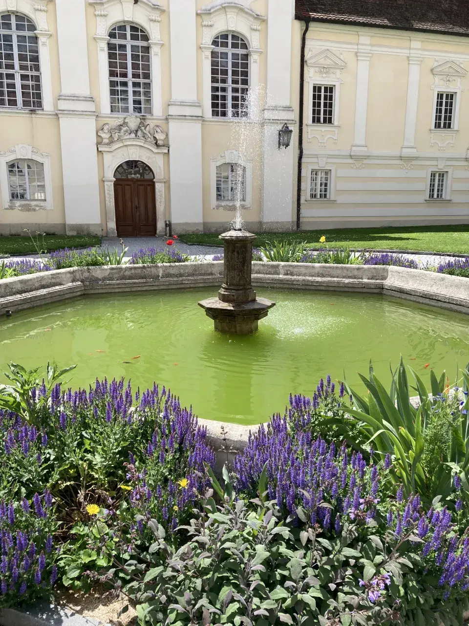 Rozkvetlé nádvoří kláštera v Altenburgu