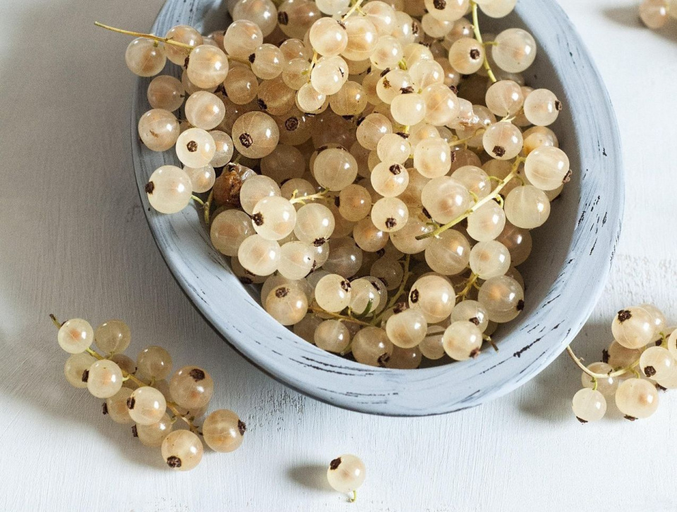Zralé bobule bílého rybízu mají bílou nebo lehce nažloutlou barvu