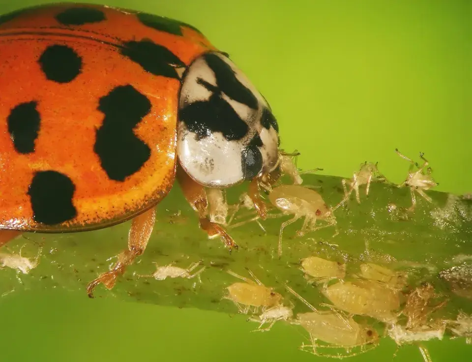 Slunéčko východní funguje jako biologická zbraň proti škůdcům, protože vysává šťávy z jiných druhů hmyzu, a především si pochutnává na pro nás tolik otravných mšicích