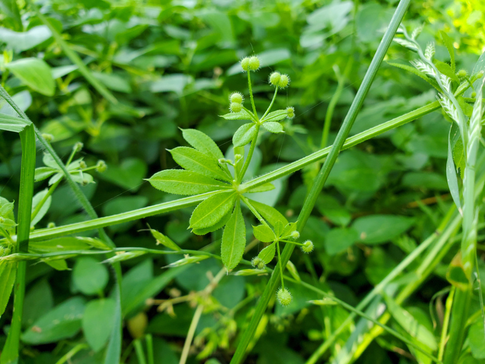 Svízel přítula (Galium aparine) se běžně vyskytuje i na našich zahradách