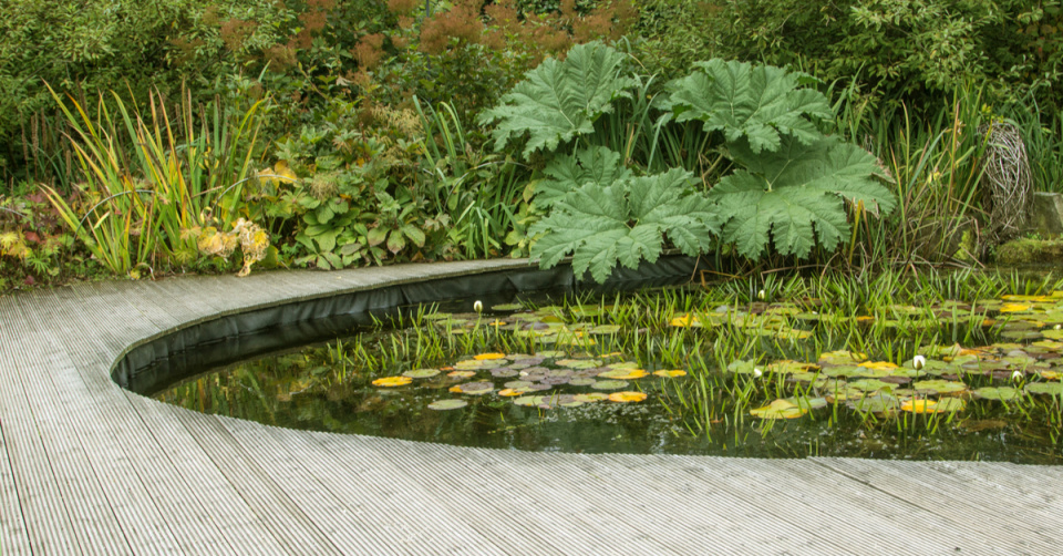 K městskému modernímu jezírku vysazujte rostliny s nápadným vzhledem.