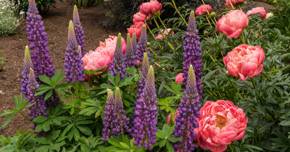 Při kombinaci pivoněk s dalšími rostlinami vycházejte vždy ze souladu nebo naopak kontrastu barev a tvarů daných druhů.