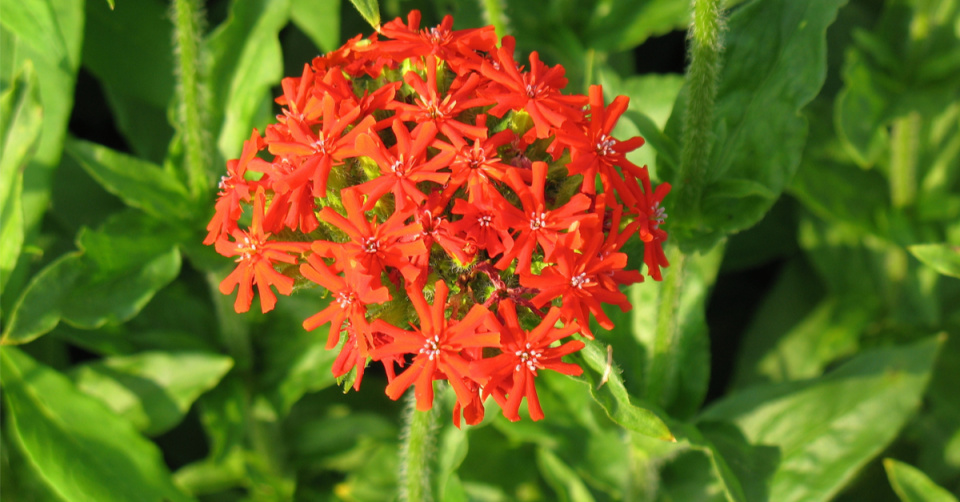 Kohoutek chalcedonský je pro své zářivě červené květy nazýván hořící láskou