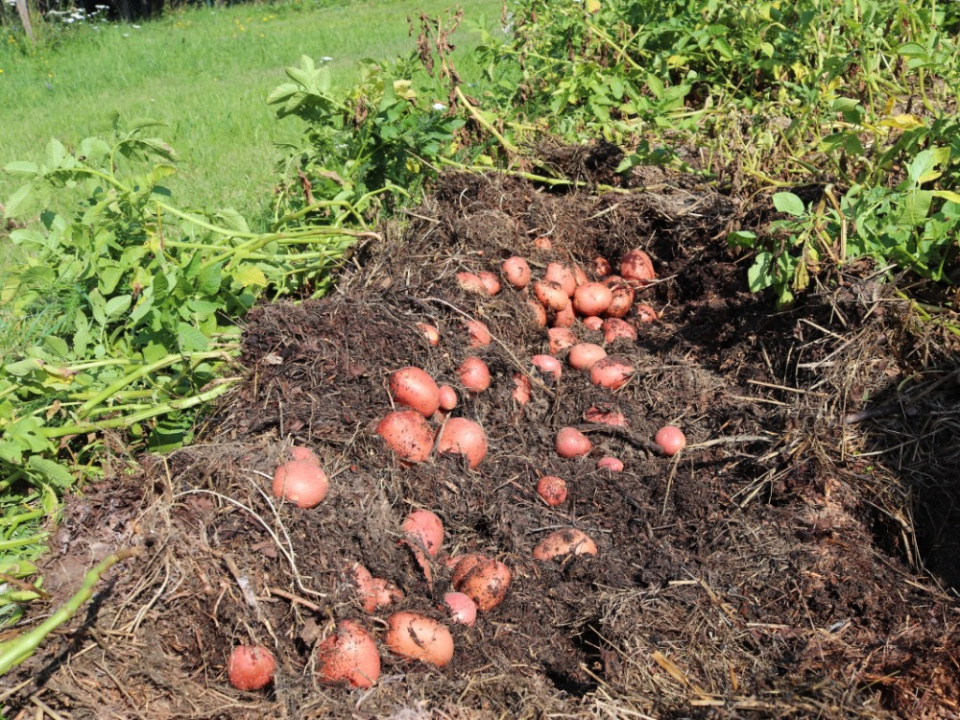 Brambory pěstované v rostlinném odpadu se dobře sklízejí a jsou čisté, navíc se nemusejí plít nebo okopávat.