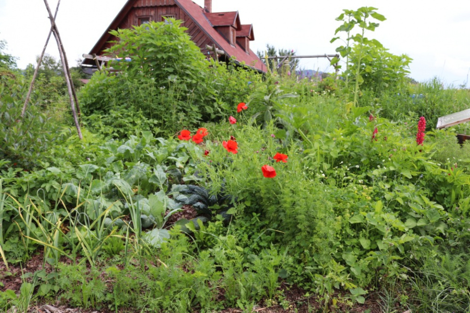 Opravdu tu před pár lety vyrostla zjara jenom malinká řídká travička a v červnu už byla suchá. Ani kopat se tu nedalo, neboť podloží tvoří skála a kamení. Stačilo ale vytvořit vrstvu kvalitní půdy, a roste to tu až moc.