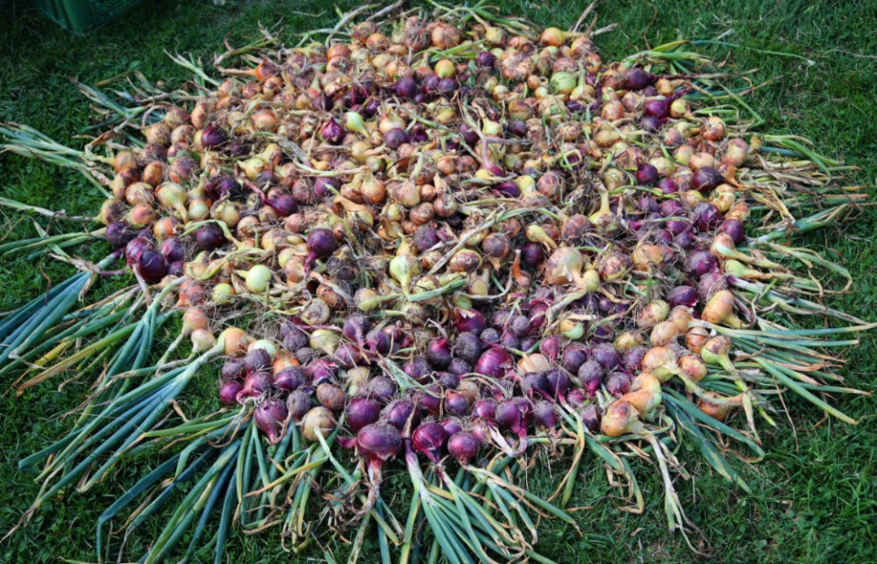 „Pěstování česneku a cibule je pro nás nejjednodušší. Na záhonu odhrneme mulč, cibulky nebo stroužky zapícháme a opět zamulčujeme. Zelenina mulč proroste a nic jiného v mulči po celou sezonu nemá většinou šanci růst. Potom jenom sklidíme,“ objasňuje paní Ilona.