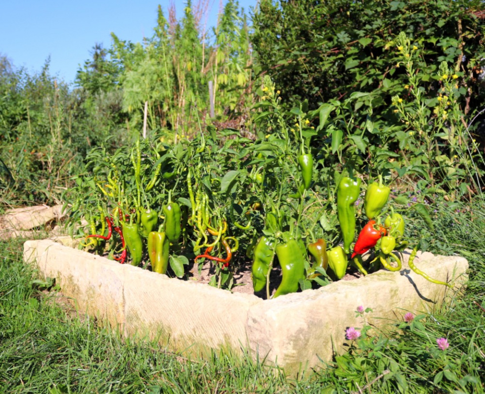 „Paprikám jsme vytvořili vyvýšený záhonek z kamene, takže mají dost tepla i u nás na Vysočině,“ říká paní Ilona.
