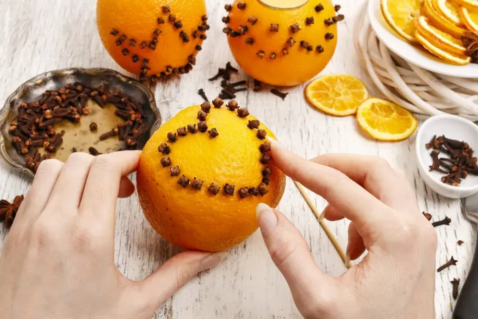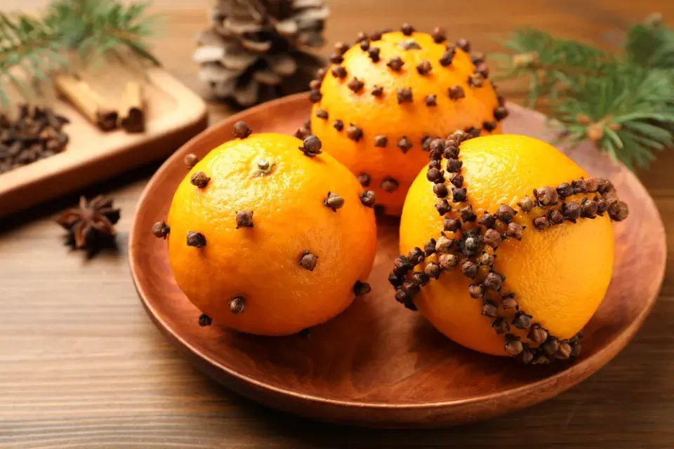 Na vánoční dekorace využijte pomeranče a nejvoňavější vánoční koření, hřebíček