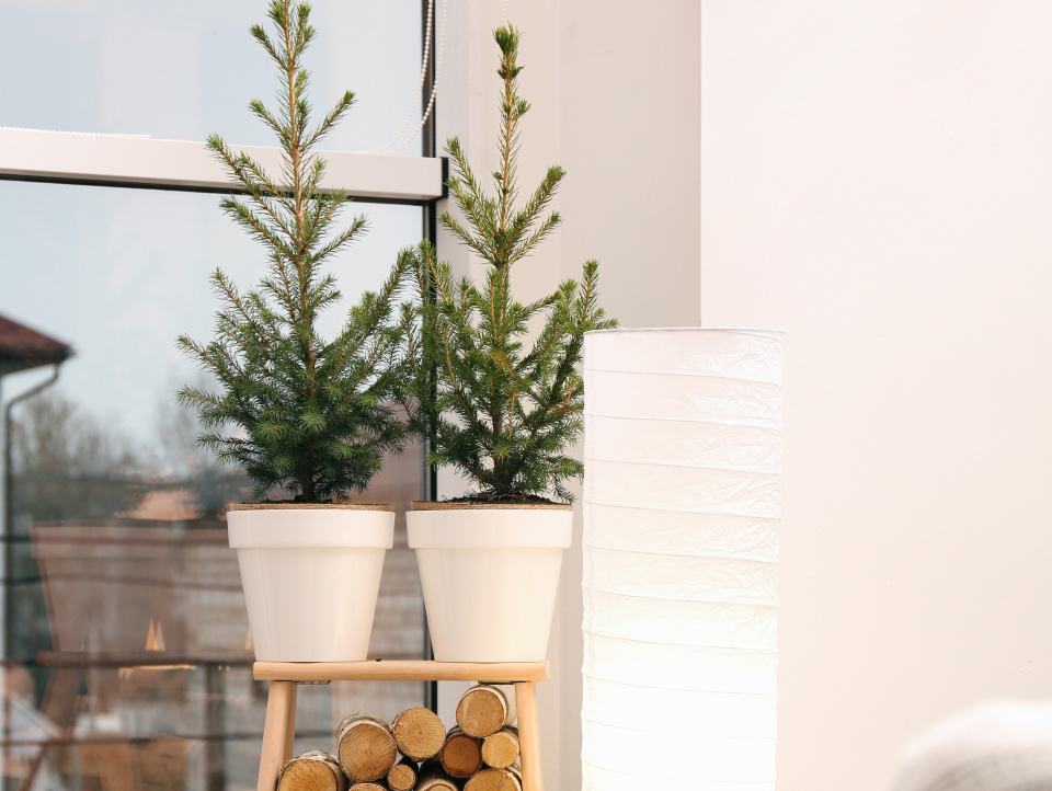 Stromky v květináči vykouzlí báječnou vánoční atmosféru i bez dalších ozdob