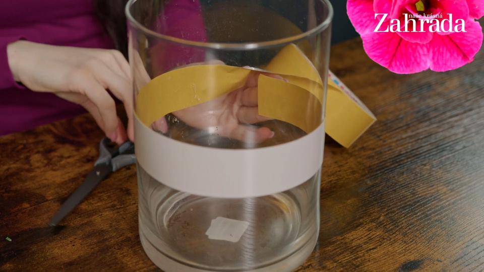 Úzký pruh lepenky nalepte kolem vázy. Umístěte ji asi v polovině výšky vázy