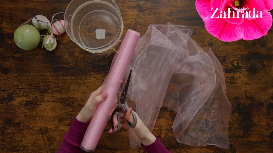 Ustřihněte kus organzy, průsvitné dekorační látky, pomačkejte ji a vložte do vázy
