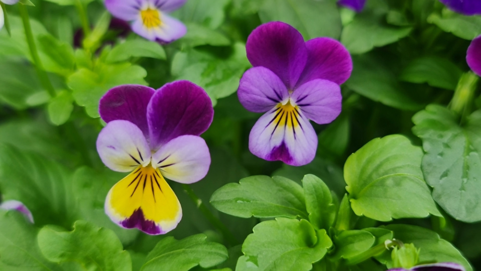 Violky rohaté mívají často horní dva korunní listy ve zcela odlišné barvě od zbylých tří lístků