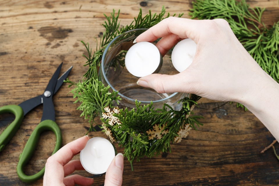 Do hotového svícnu vložte čajovou nebo jinou menší svíčku