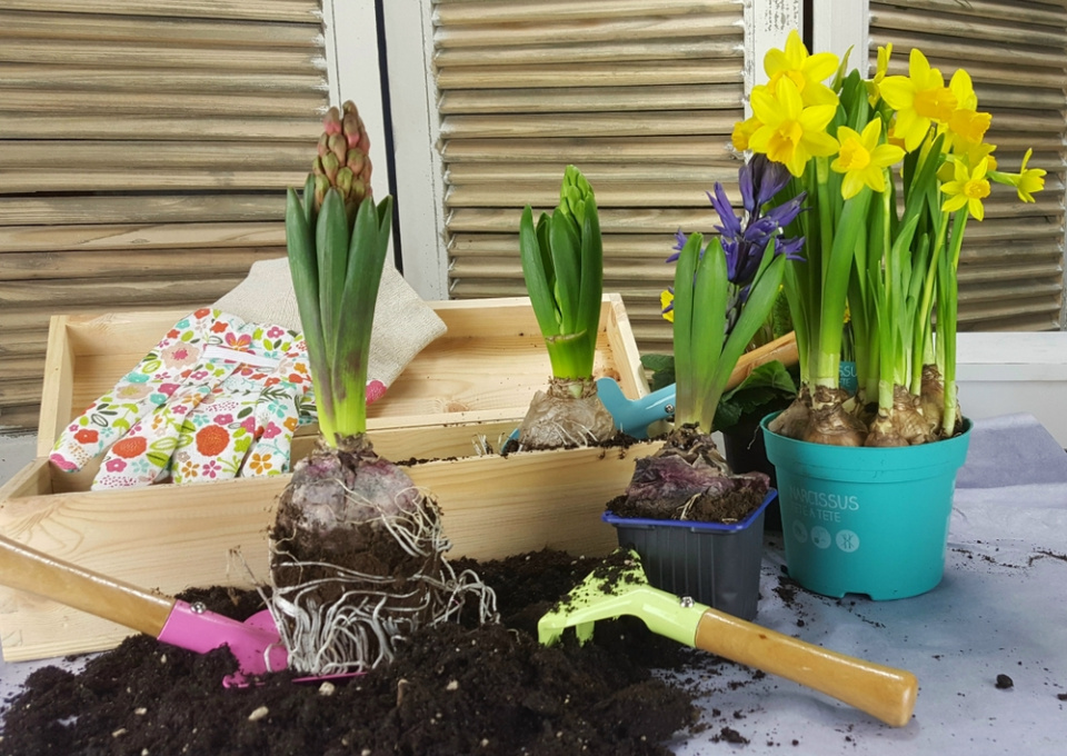 Jarní cibuloviny mnohem lépe vyniknou, a také budou mnohem lépe odolávat nepřízni počasí, pokud je vyklepnete z maličkého květináčku, ve kterém se prodávají, a vysadíte je do prostornějšího truhlíku nebo misky