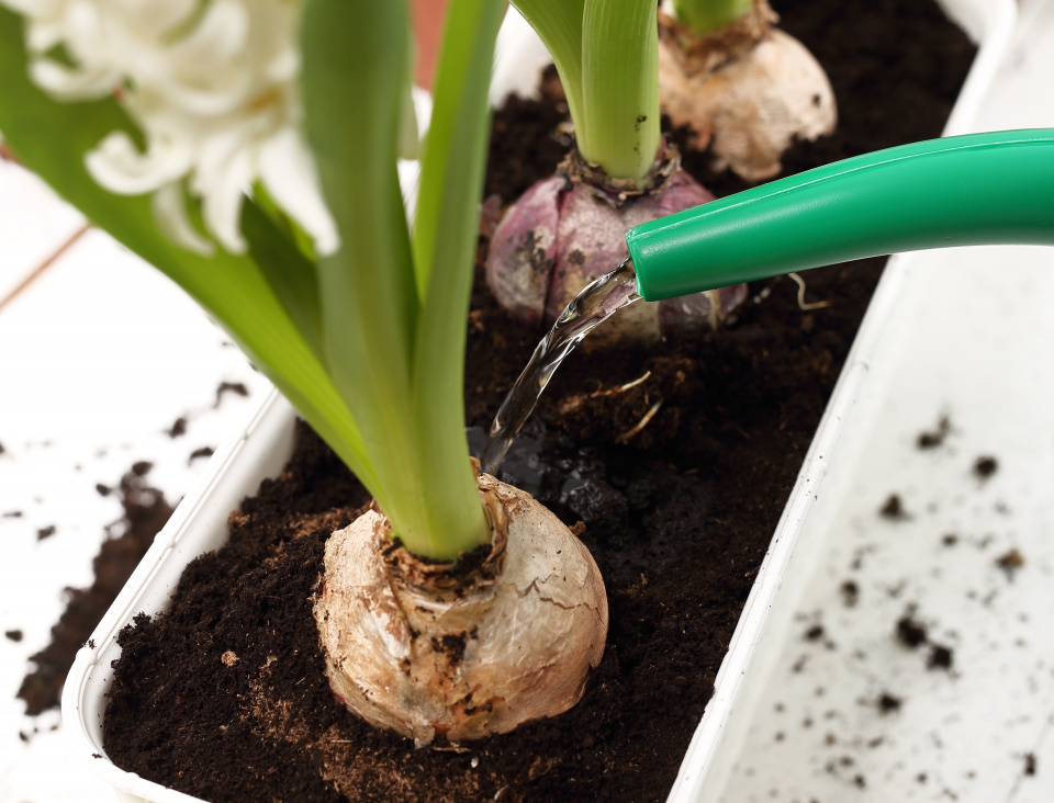 Vysazené cibuloviny ihned zalijte, ale zajistěte v truhlíku dostatečný odtok vody, aby nedocházelo k zahnívání cibulek