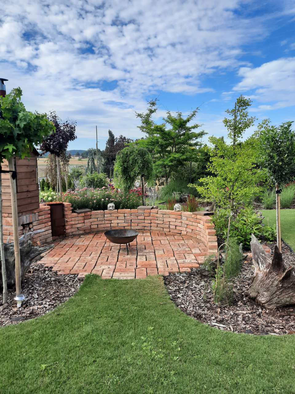 Před dvěma lety si vymysleli, že by nebyla špatná udírna a ohniště. Měli možnost sehnat ještě staré cihly, tzv. zvonovky, ze kterých ohniště postavili.